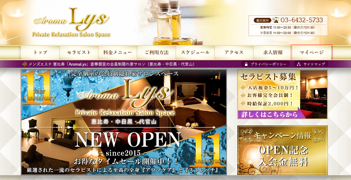 目黒駅から徒歩5分 11:00〜5:00 70分/15,000円〜03-6277-0252セラピスト数日本人 36人年齢層20代〜40代以上部屋タイプルーム型「ダリア目黒」には幅広い年齢層のセラピストが集まっています。10代後半から年上では何と40代、親子以上に年齢の離れたラインナップは多くの人の好みを完全サポート。学生っぽさが好き、熟したアラフォーが好き、どのような嗜好でも対応できるお店です。またセラピスト選びに迷ったときはランキングを確認してみるのもおすすめ。年代ごとに人気を集めるセラピストがチェックできます。料金は100分で20,000円、この料金内にメンズエステらしい施術メニューがすべて備わっているので安心です。指名料、入会金はありますがそれらを含めてもリーズナブル。オイルマッサージリンパマッサージ日本人クーポン新人割で新人のセラピスト限定で100分・120分コースで3000円引き! -